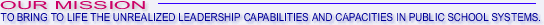 There are a variety of existing seminars, videos, workshops, and graduate degree programs in education claiming to be focused on leadership development. Professional associations, colleges, and independent organizations offer them. If you look closely, these programs tend to be focused on the management issues versus the needed leadership capabilities and capacities. Topics such as how to update your curriculum, develop a professional development program, evaluate teachers, develop a budget, or implement new scheduling tend to be what's offered. Few of these efforts and organizations are dedicated to the development of effective leadership in public education, but rather offer more courses or programs. Such efforts are also training and education programs to meet state certification or re-certification requirements, or they provide ways to add graduate credits to raise salary levels. They seldom have follow-up, reinforcement, and ongoing support at either the individual, school, or district level. There is a predisposition to offer programs developed and based upon the education world and its practices, rather than reaching out to or collaborating with other institutions, industries, concepts, and models. There are exceptions to these general trends where there are isolated excellent leadership development efforts in public education, but our experience is that they are far too few to address an ever expanding need.